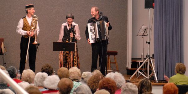 * Brian Bender (trombone, melodica), Terry Traub (accordion, fidl) and Dena Ressler (clarinet)